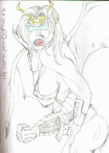 Behold one of the last dragon warriors left on any world. Cyblade is beauty and technolgy all in one. She has more weapons than the Predator. Plus she is more deadly. She was created from a Dragon's egg and the D.N.A of Klevox and Rage's fetal egg.